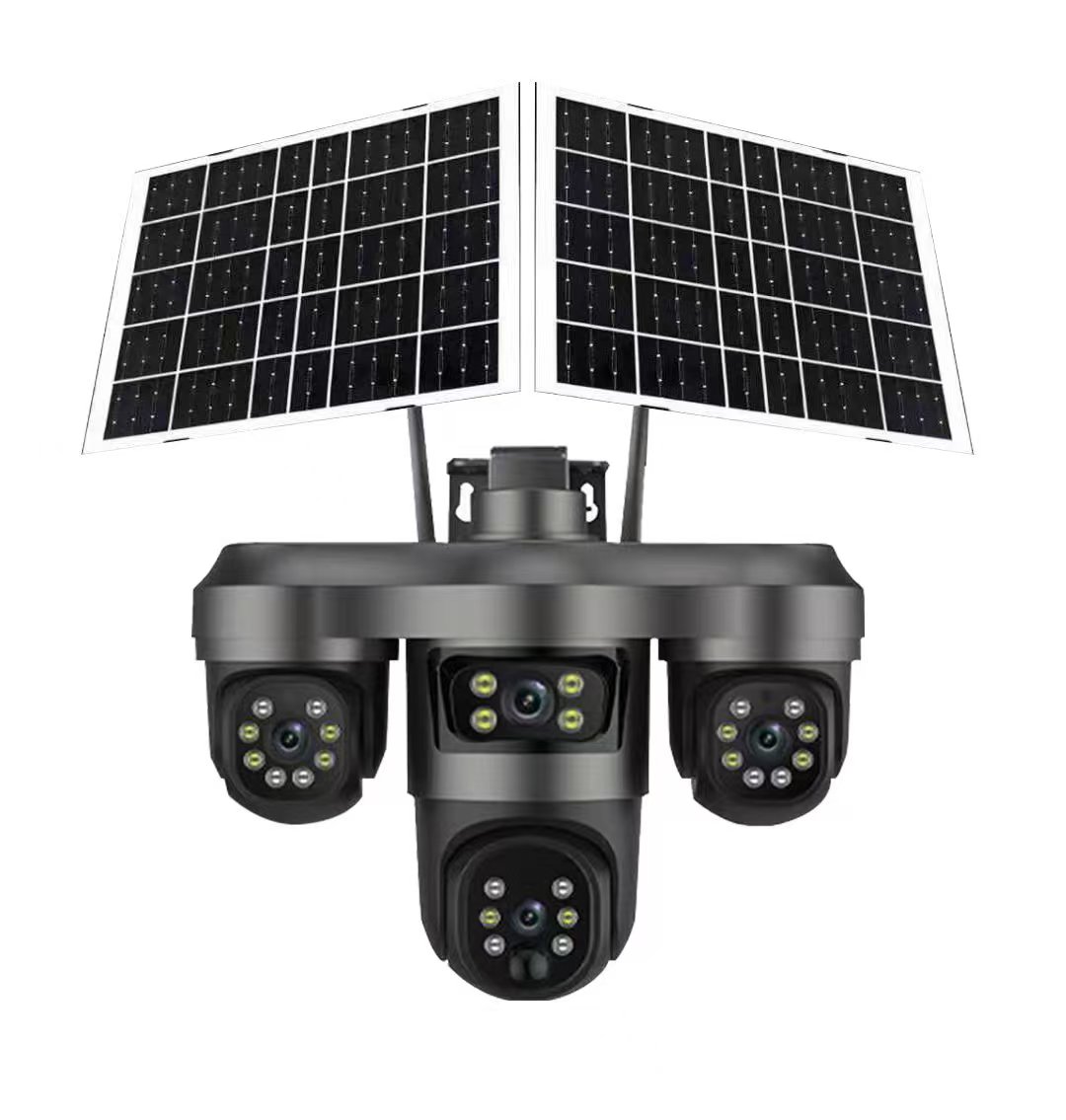كاميرا مراقبة خارجية تعمل بالطاقة الشمسية AOV؛ كاميرا مراقبة للاستخدام المنزلي عالية الدقة متعددة العدسات ومتعددة المشاهدات مع تسجيل على مدار 24 ساعة.