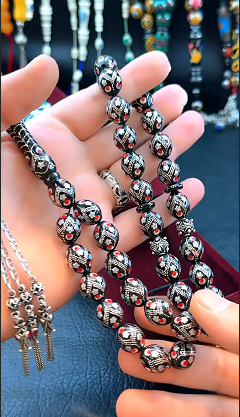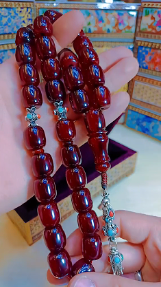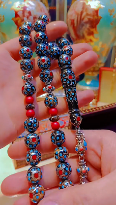 قبل 3 دقائقهذه مسبحة فضية مرصعة بالفيروز الأزرق والمرجان الأحمر. - مسبحة كهرمان أحمر ألماني